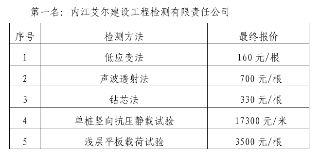 內江市污水處理廠(chǎng)提標改造工程樁基檢測單位中標結果公示