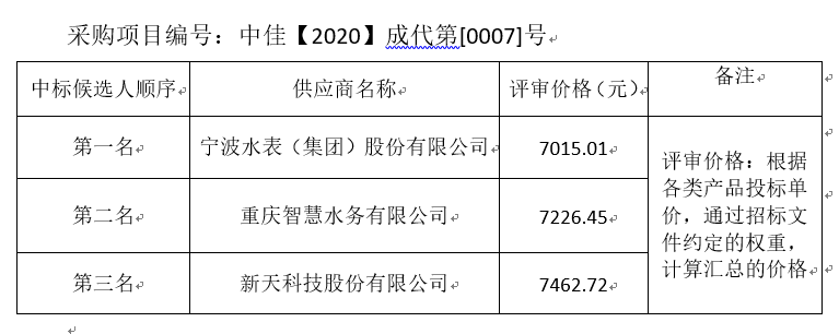 內江市水務(wù)有限責任公司水表采購項目 評標結果公示