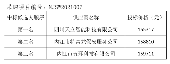 內江市污水處理有限責任公司監控系統升級改造項目評標結果公示