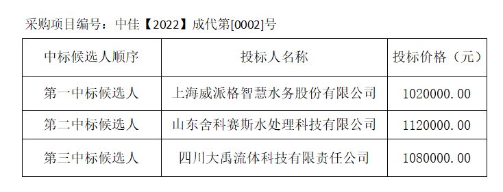 內江市水務(wù)有限責任公司水木青華小區集中式管道直飲水成套設備及附件采購(含安裝)項目評標結果公示