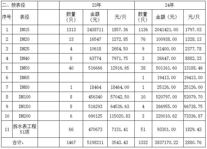 內江市水務(wù)有限責任公司2023-2024供水安裝平均價(jià)格公示