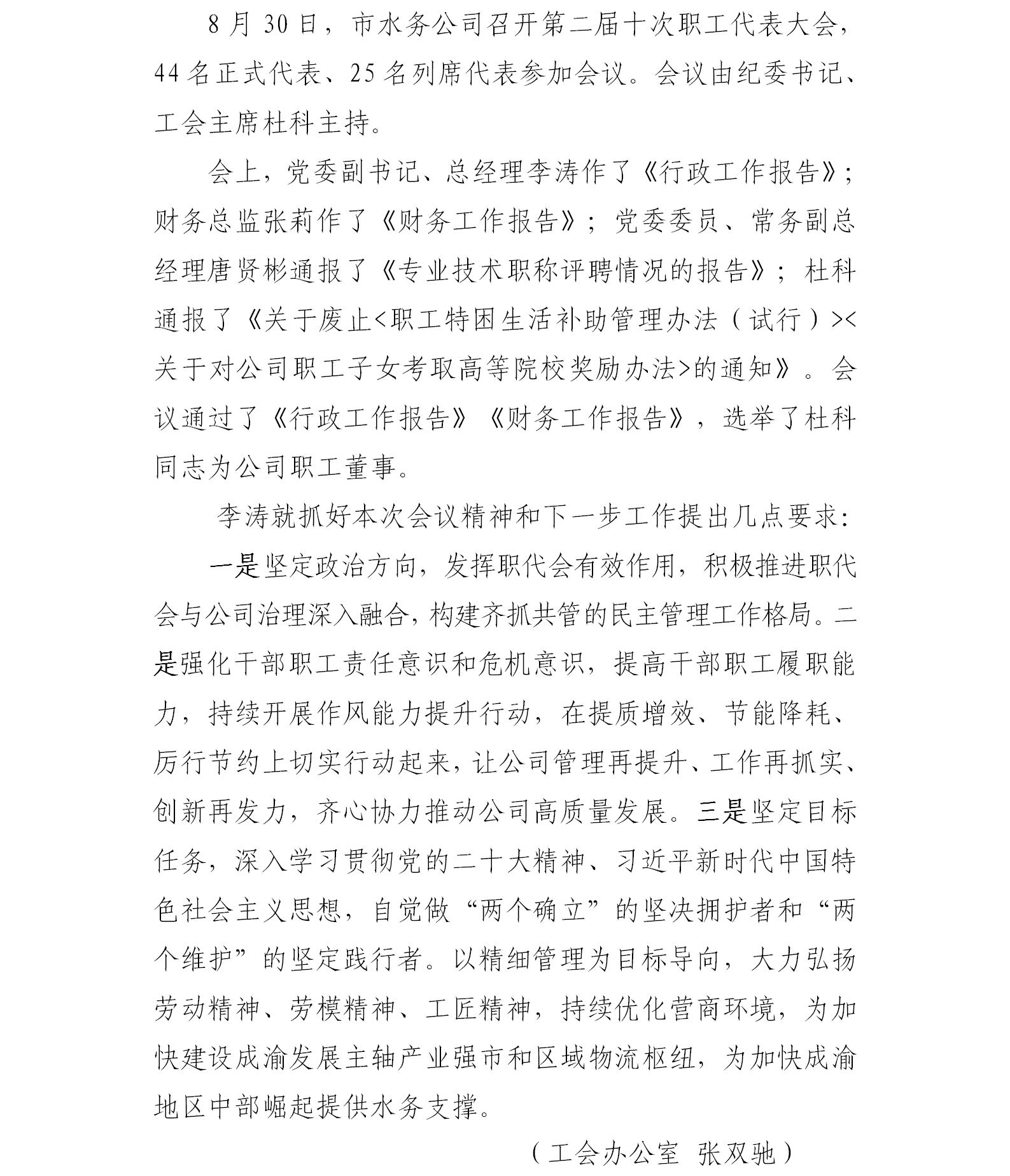 市水務(wù)公司召開(kāi)第二屆十次職工代表大會(huì )