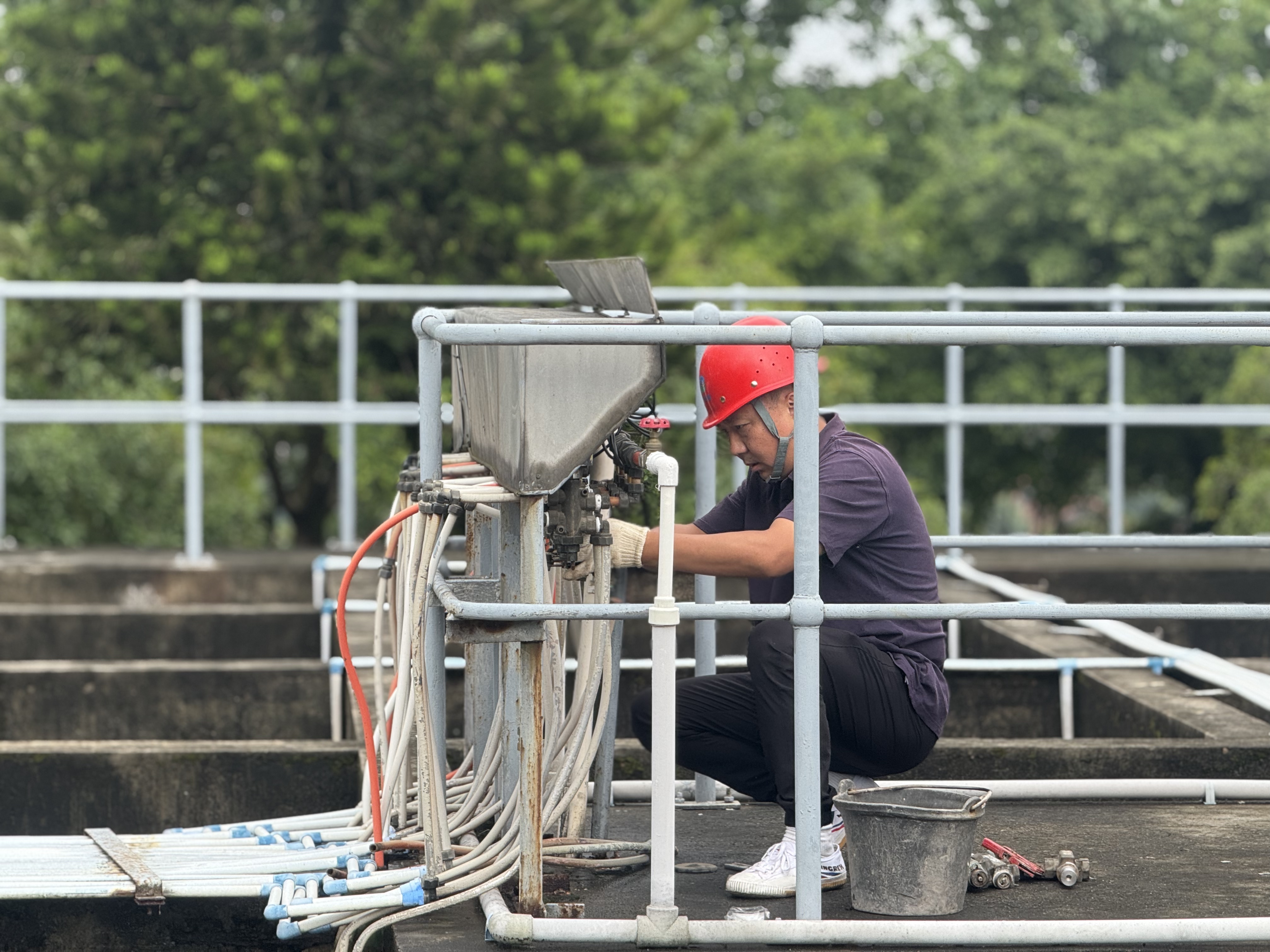 供水安全的責任重于泰山。7月8日清晨,剛剛完成三水廠(chǎng)二氧化氯投加設備維修的供水分公司維修組,聞令火速轉戰二水廠(chǎng),投入到緊張的“戰斗”中:迅速展開(kāi)拆解、診斷、更換、調試工作。經(jīng)驗豐富的維修師傅們動(dòng)作嫻熟而精準,他們以專(zhuān)業(yè)的技術(shù)和頑強的作風(fēng),與時(shí)間賽跑,與故障較量,高效疏通了排泥系統的“堵點(diǎn)”,確保流進(jìn)千家萬(wàn)戶(hù)的每一滴自來(lái)水,都經(jīng)得起最嚴格的檢驗。