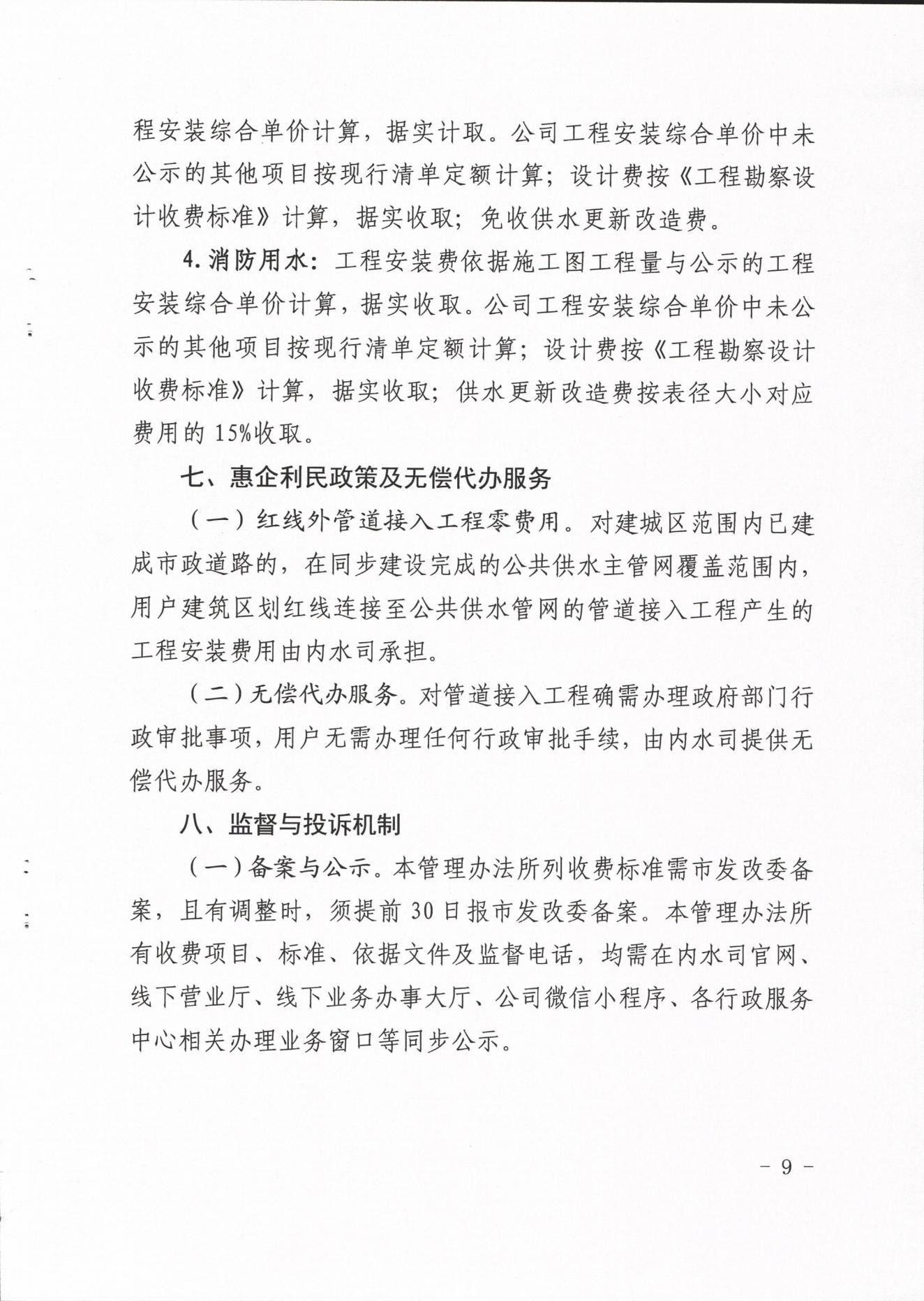 內江市水務(wù)有限責任公司供水工程安裝及供水管道更新改造收費管理辦法(試行)